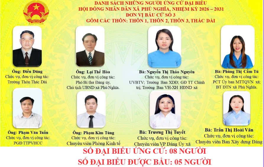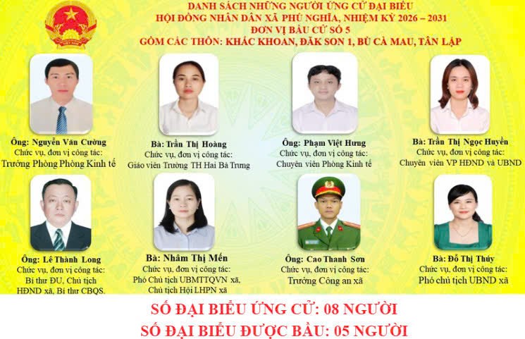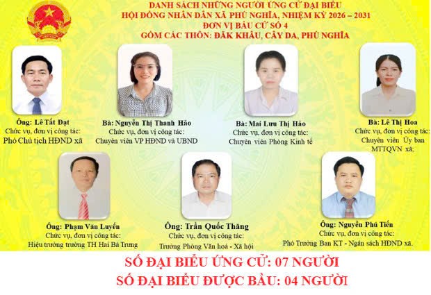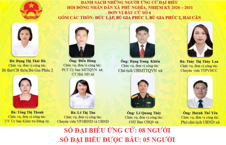 Danh sách người ứng cử đại biểu Hội đồng nhân dân xã, nhiệm kỳ 2026 – 2031 tại 6 Đơn vị bầu cử.