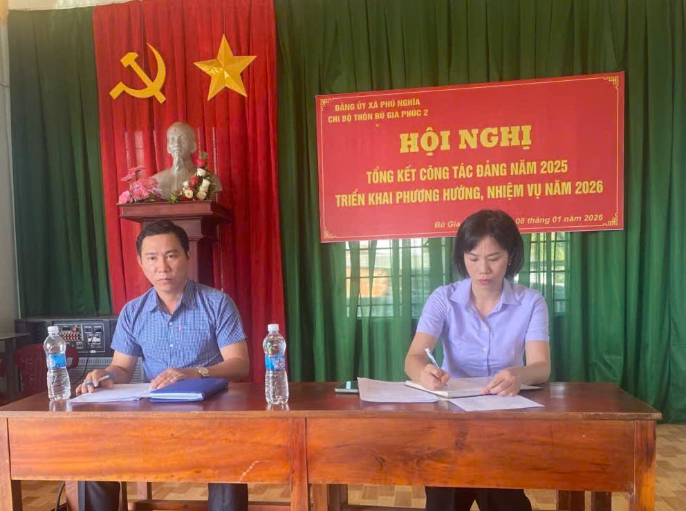 🌈Chiều ngày 08 tháng 01 năm 2026, Chi bộ thôn Bù Gia Phúc 2 đã tổ chức Hội nghị tổng kết công tác Đảng năm 2025 và triển khai phương hướng, nhiệm vụ năm 2026. Tham dự Hội nghị có đồng chí Nguyễn Văn Cường ĐUV - Trưởng phòng Kinh tế xã - Phụ trách Chi Bộ đã về dự và chỉ đạo tại Hội nghị.
